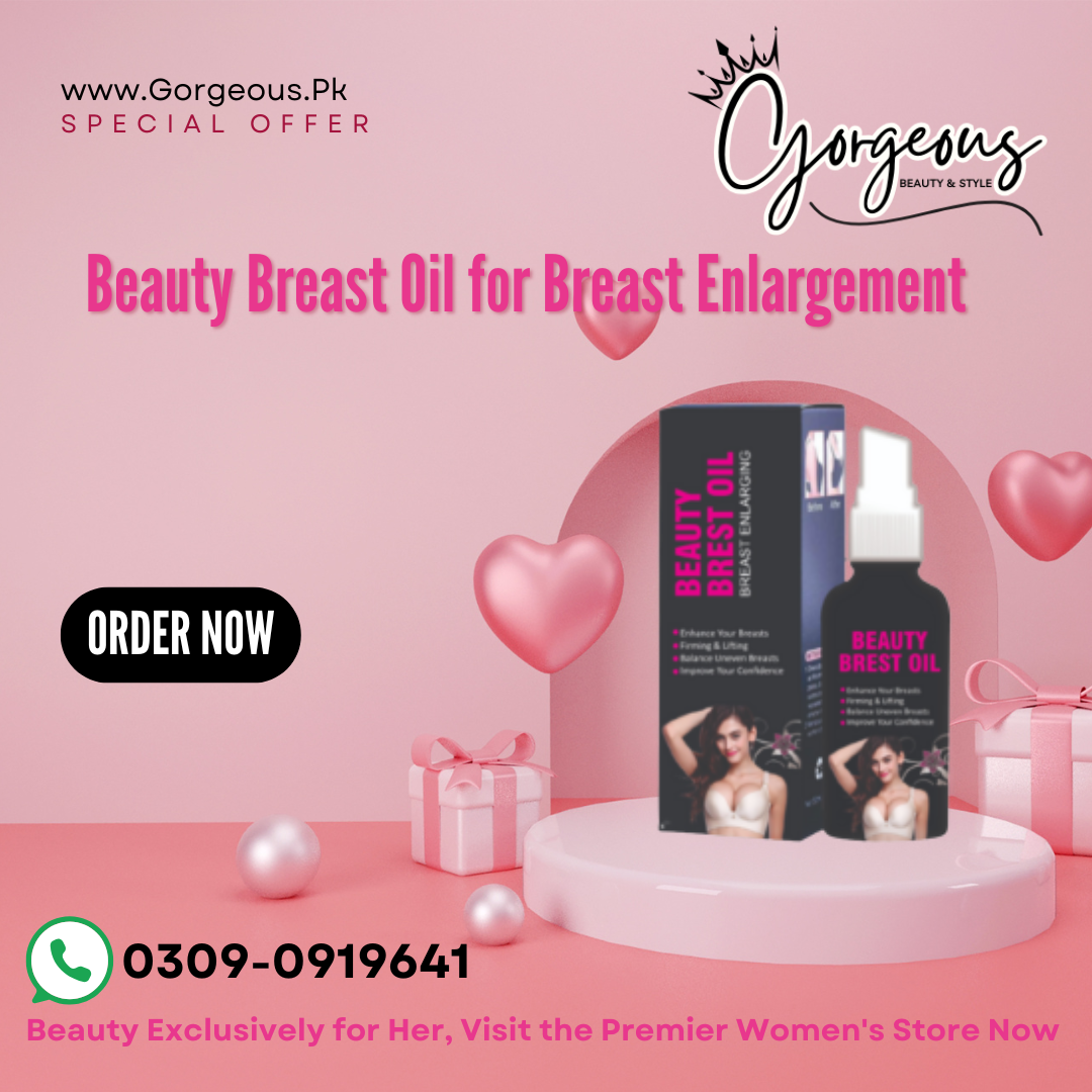 Beauty Breast Oil for Breast Enlargement is a natural care solution designed to enhance the appearance, volume, and firmness of the bust. Enriched with herbal extracts, essential oils, and nourishing botanicals, this oil works to improve skin elasticity while supporting healthy blood circulation in the breast area. With regular massage, it helps promote a fuller, firmer, and more lifted look, restoring youthful contours naturally. Its lightweight, fast-absorbing texture ensures deep hydration without leaving behind a greasy residue, making it ideal for daily use. The blend of natural ingredients also smoothens and softens skin, keeping it supple and radiant. Gentle and safe for all skin types, this breast enlargement oil provides a non-invasive way to boost confidence and enhance feminine beauty. Consistent use encourages visible results, helping achieve a naturally toned, shapely, and well-nourished bust.